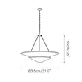 The Mollino pendant lamp features a bold, modern design and is crafted from plaster with a white finish. The hand-polished brass chain creates a subtle contrast to the lampshade, adding beauty to the lighting design throughout the home.